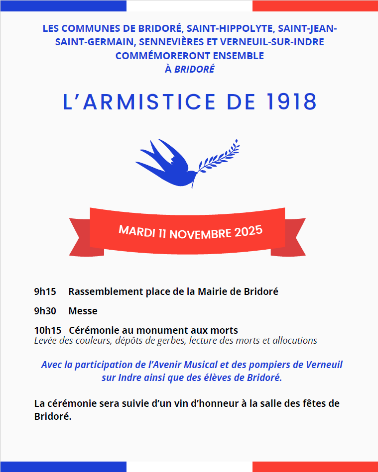 Vous avez la parole !Si vous avez envie de communiquer une information en relation avec la Commune de Bridoré, n’hésitez pas à nous écrire ou à déposer votre demande à la Mairie. |