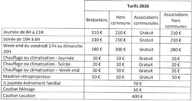 cf Délibération du 11 décembre 2025: Tarifs des services communaux pour l'année 2026